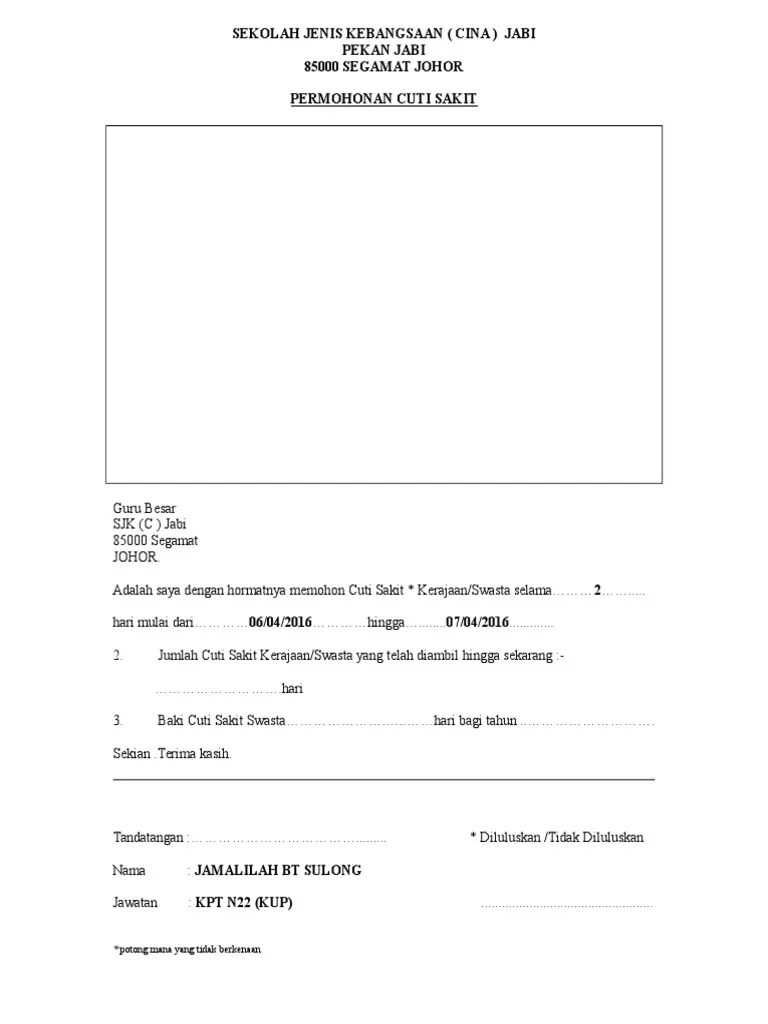 Hari ini saja saya nak menulis mengenai m.c (medical sickness. Sijil cuti sakitsijil cuti sakit pdfsijil cuti sakit in english fill sijil cuti. Contoh surat mc klinik kerajaan · anakbukitgantang in putrajaya bolehkah kakitangan · mc sijil perakuan sakit hak pekerja hak majikan atau · kemuka . Selaras dengan perniagaan dalam talian yang semakin berkembang, wujud satu sindiket yang menawarkan kemudahan membeli sijil . Rasuah hadir dalam pelbagai bentuk, contoh yang popular digambarkan seperti mengambil sijil cuti sakit (mc) palsu. Kepada pihak sekolah akan ketidakhadiran pelajar ke . Sijil cuti sakit, mc, contoh mc, maksud mc.